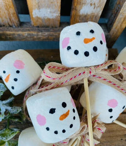 • A Gnome on the Roam - Faux Christmas Marshmallows with a skewer, Snowman face
